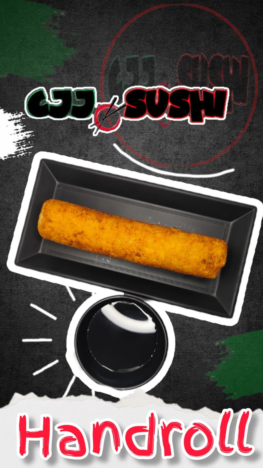 Exquisito handroll XL. Con una base de queso crema y cebollín finamente picado, pasado por tempura y panko, elije un relleno de nuestra carta con una salsa soya o agridulce.